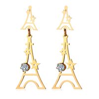 Eiffel Tower Earrings For Women Girls Jewelry Shiny Cubic Zirconia Femme Long Earrings Gold Color Boucles D Oreilles Femmes