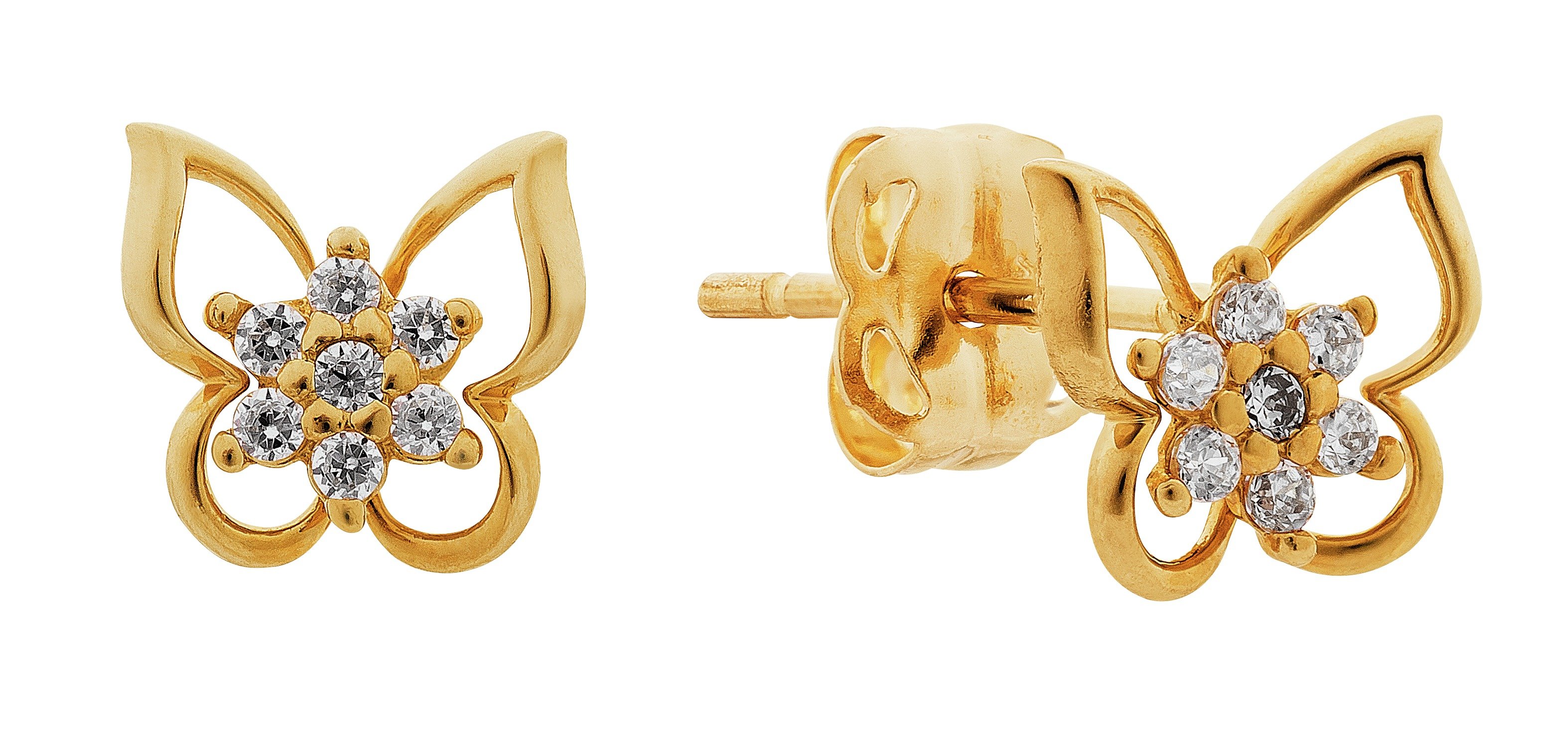 Miss Glitter 9ct Gold Kids Cz Butterfly Stud Earrings