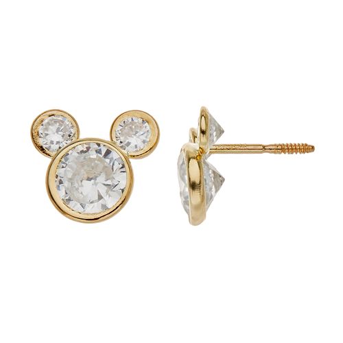 Disney S Mickey Mouse Cubic Zirconia 14k Gold Stud Earrings