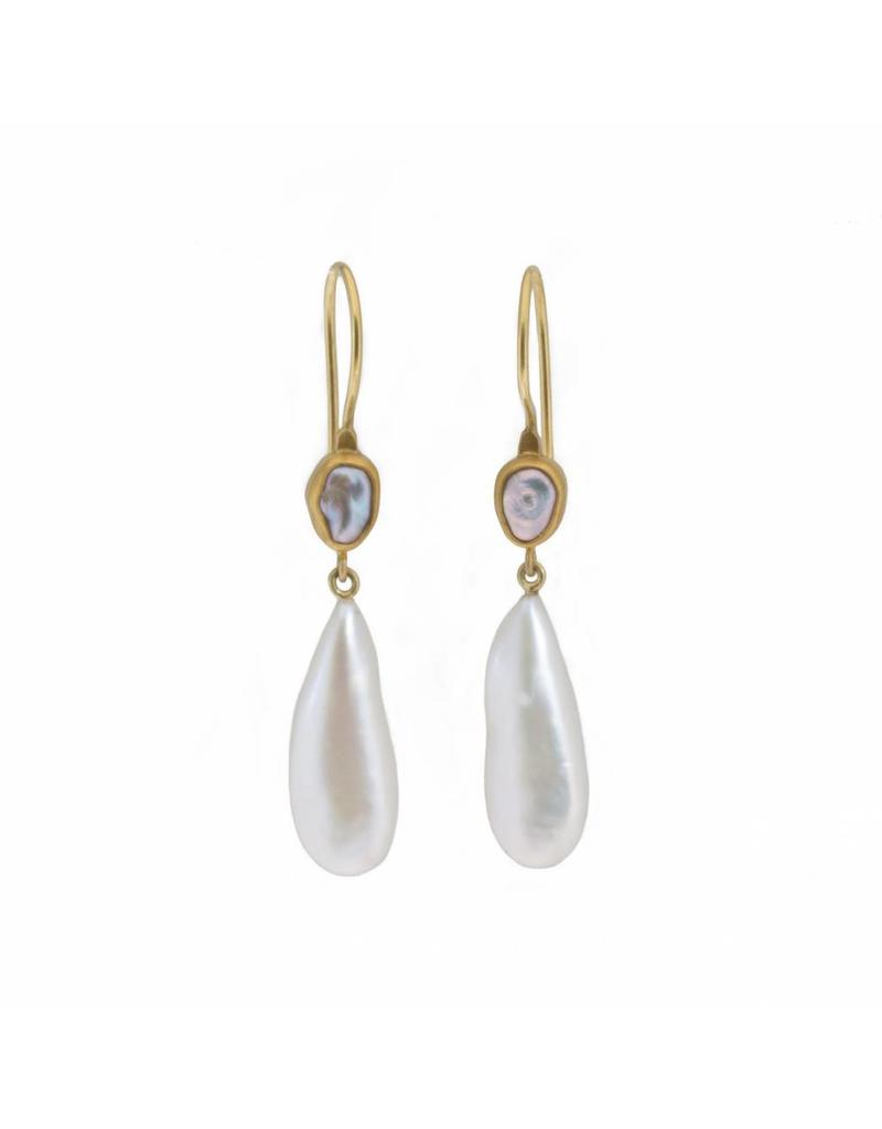 Double Pearl Drop Earrings In 22k And 18k Yellow Gold