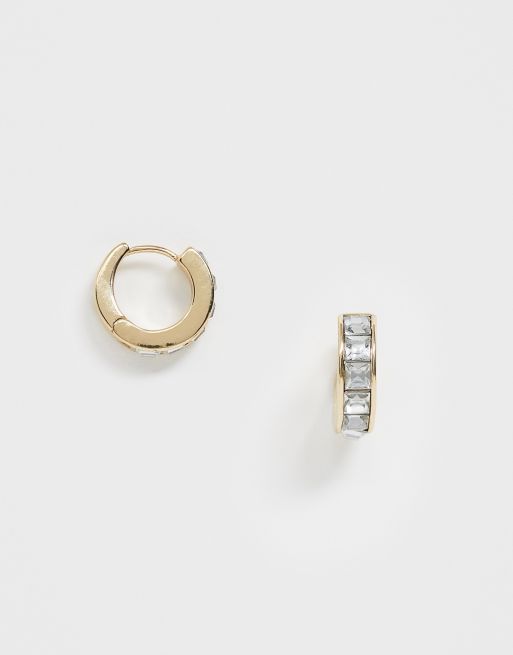 Asos Design Small Hoop Earrings With Crystal In Gold Tone