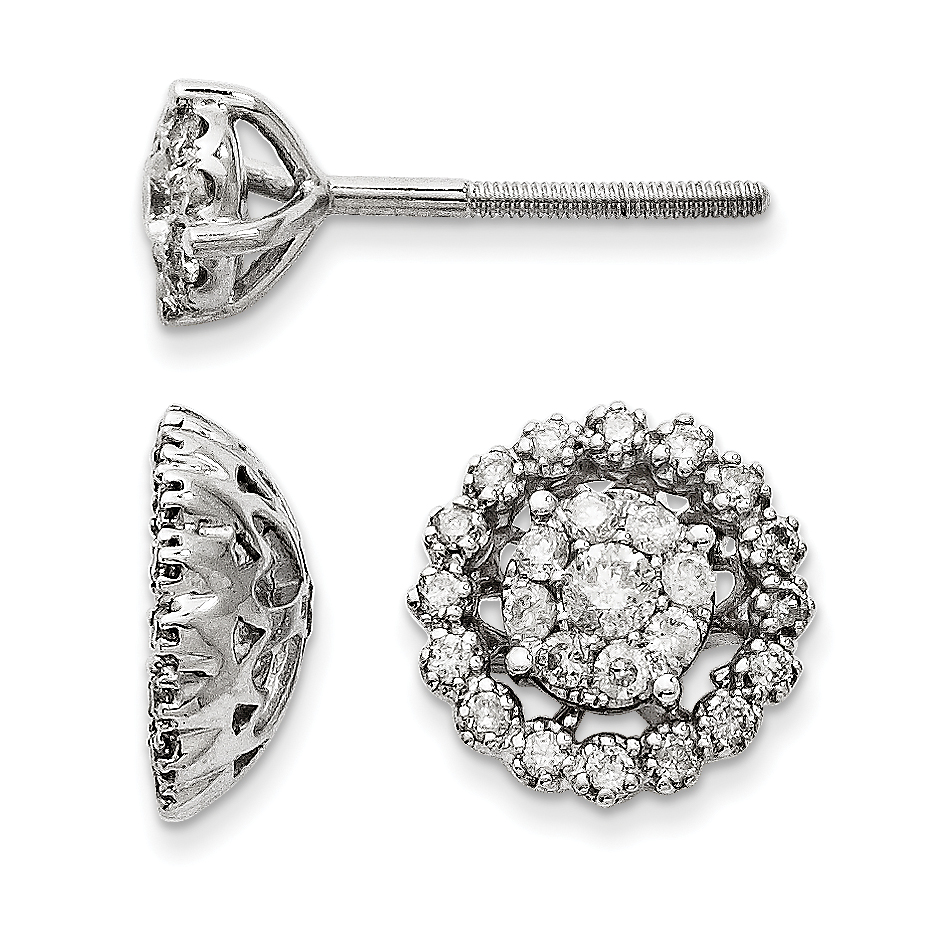 14k White Gold Medium Flower Jacket Diamond Post Earrings