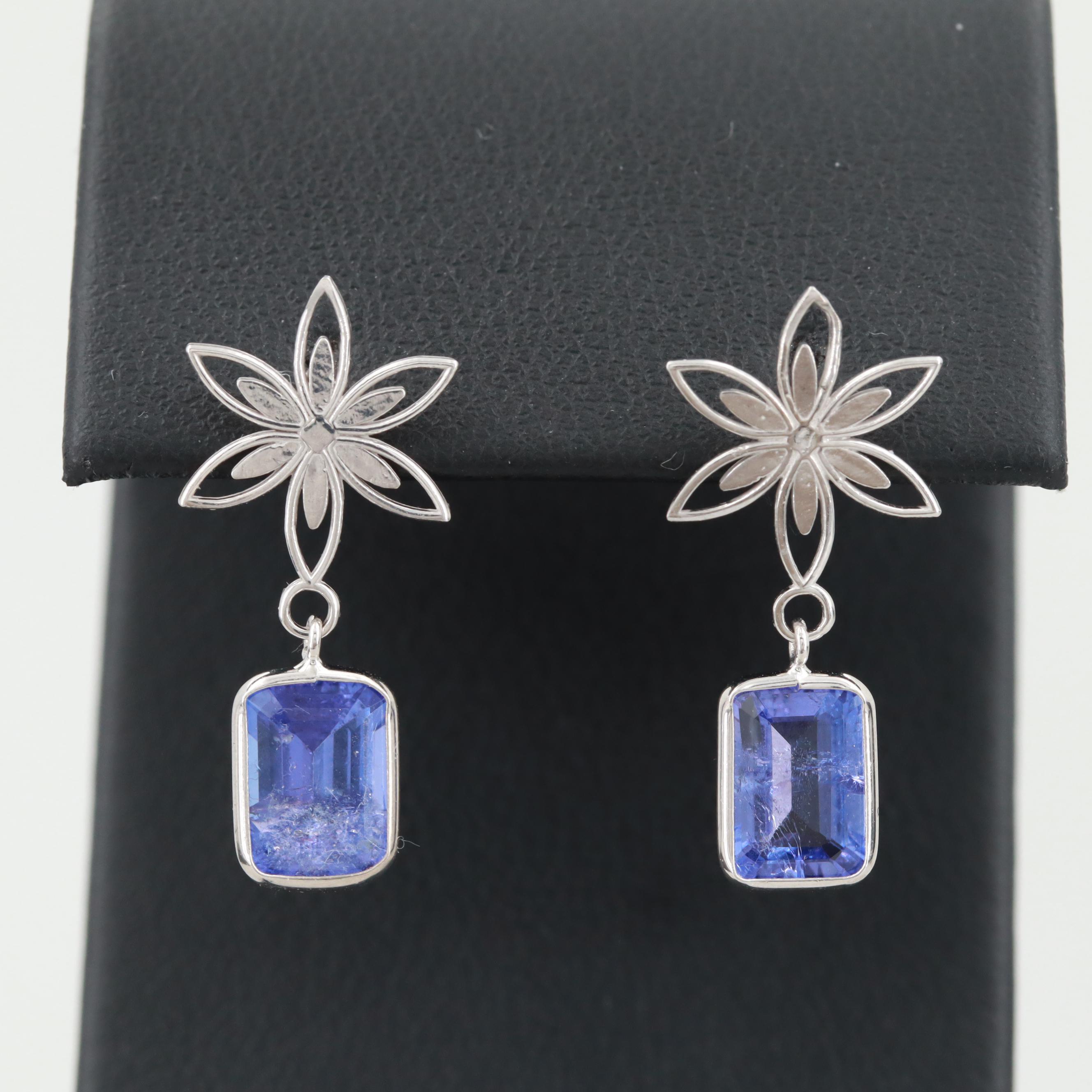 Tanzanite Earrings With Diamonds In 14k White Gold