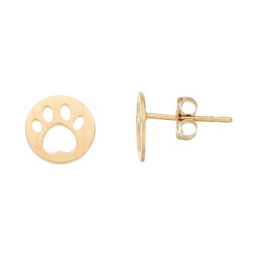 14k Gold Dog Paw Stud Earrings
