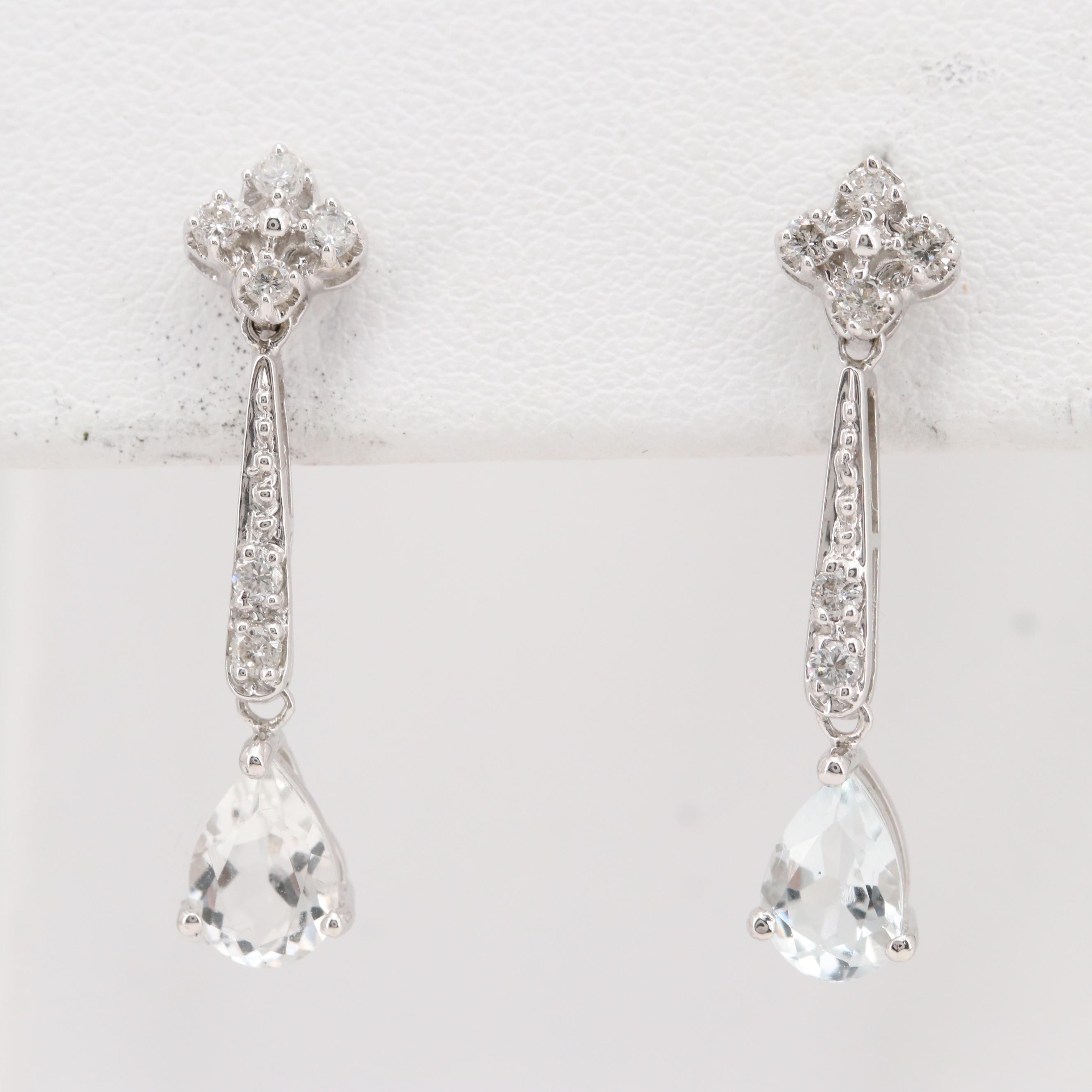 Blue Pear Cut Aquamarine Diamond Drop 14k White Gold 1 19ct Earrings 48 Off Retail