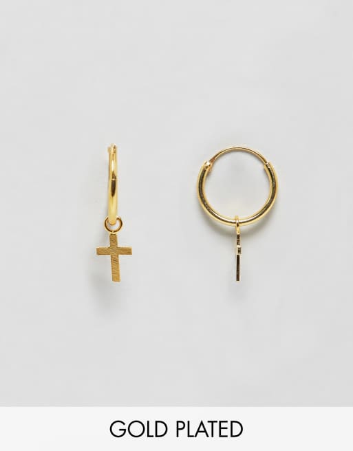 Kingsley Ryan Gold Plated Sterling Silver Cross Drop Hoop Earrings