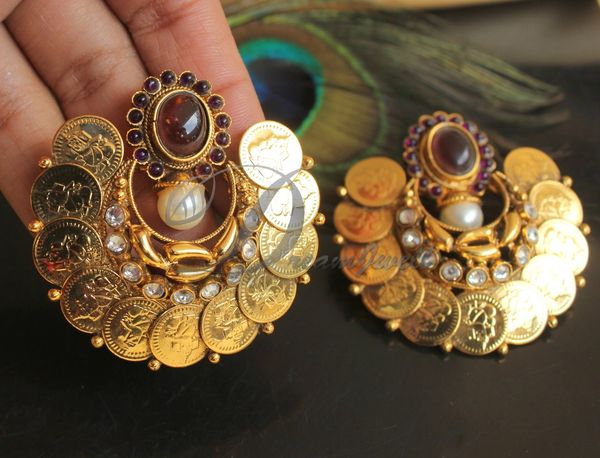 Beautiful Antique Purple Ganesha Designer Coin Bali Earrings Dj23456
