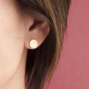 Gold Textured Disc Stud Earrings Round Circle Minimalist