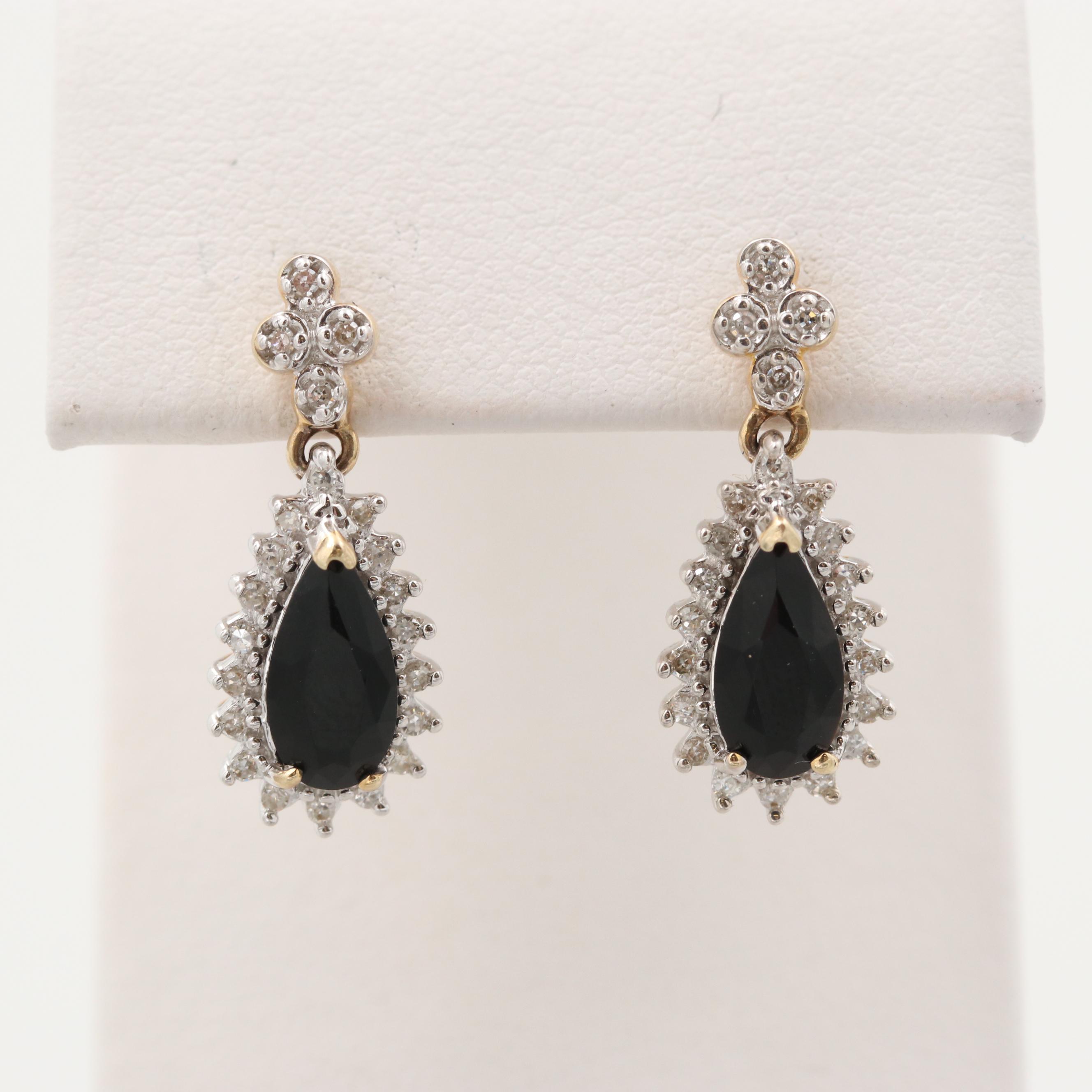14k Yellow Gold Black Onyx And Diamond Drop Earrings With White Gold Accents