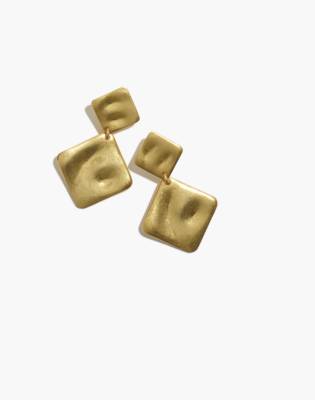 New Gold Rectangular Square Chunky Drop Earrings Depop