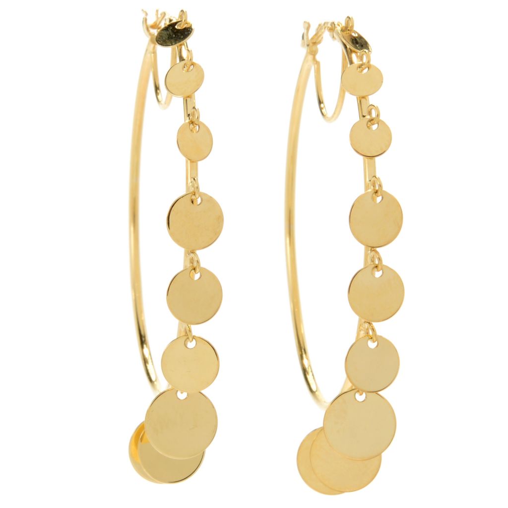 14k Gold Dangle Disc Hoop Earrings 60mm