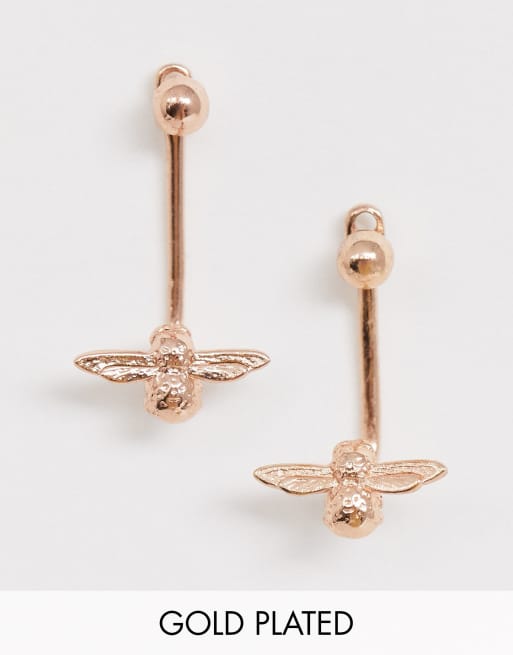 Bee Bloom 18ct Rose Gold Plated Floral And Bee Crawler Earrings