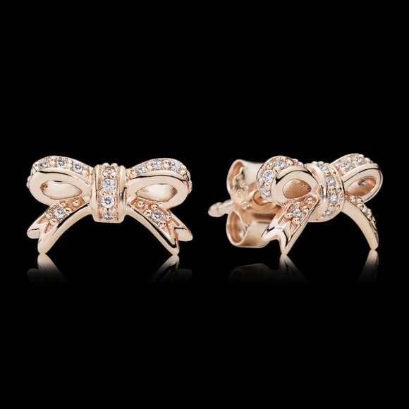 Pandora Sparkling Bow Stud Earrings Rose Gold