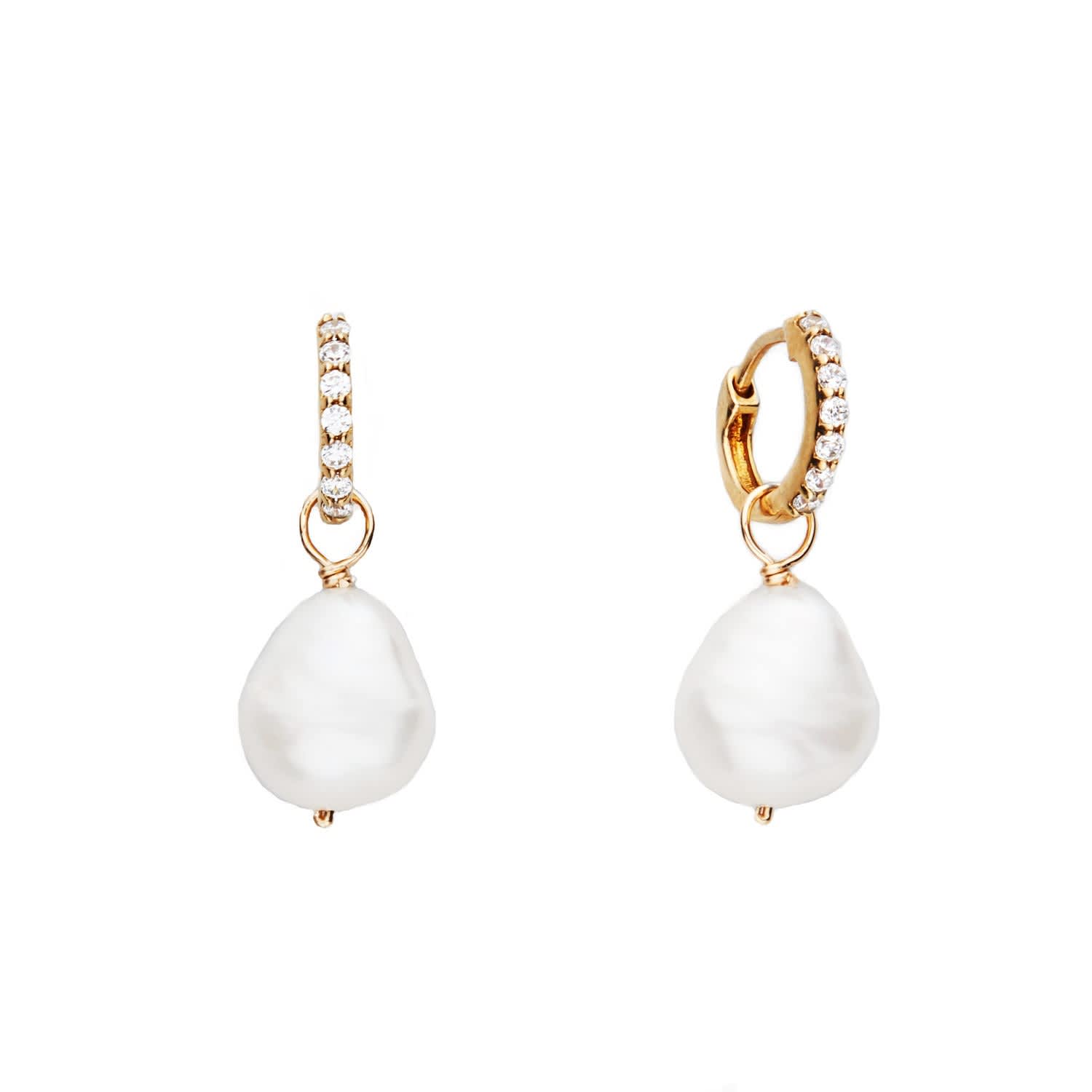 Small Gold Huggie Pearl Drop Earrings By Lily Roo