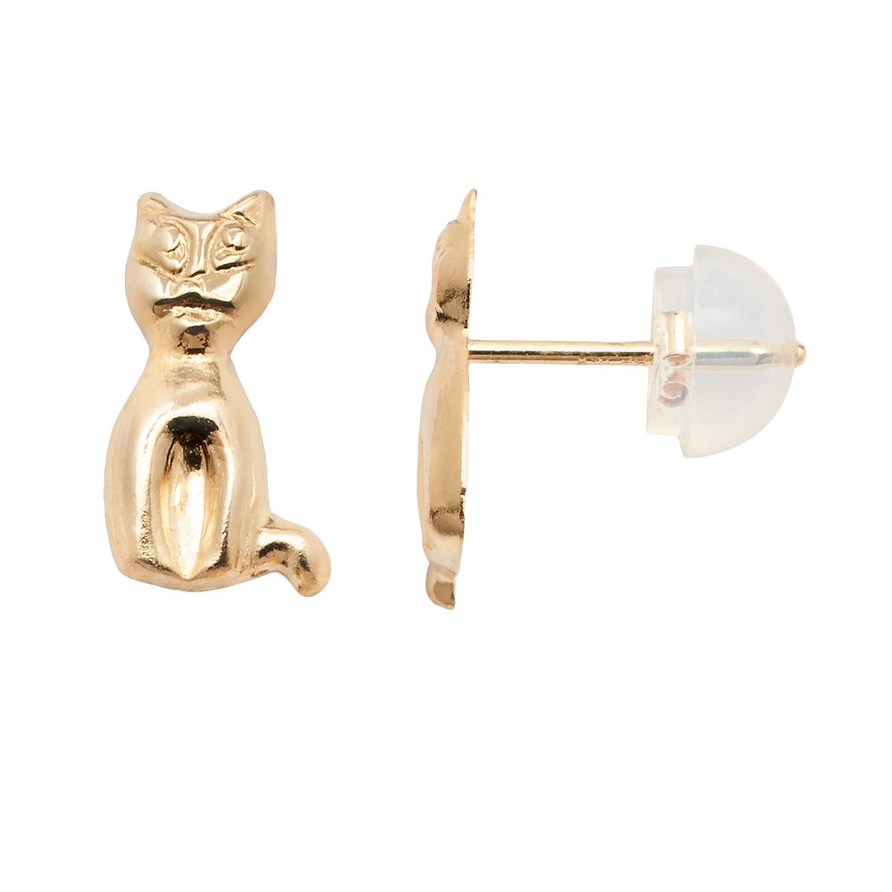 Junior Jewels 14k Gold Cat Stud Earrings Kids