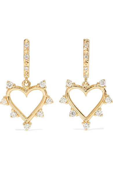Open Heart 14 Karat Gold Diamond Hoop Earrings