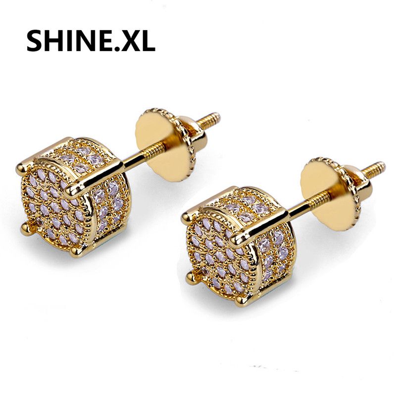 2019 New Design Gold Color Plated Iced Out Cubic Zircon Round Stud Earring Screw Back Hip Hop Jewelry For Male Women From Livex516 8 85 Dhgate Com