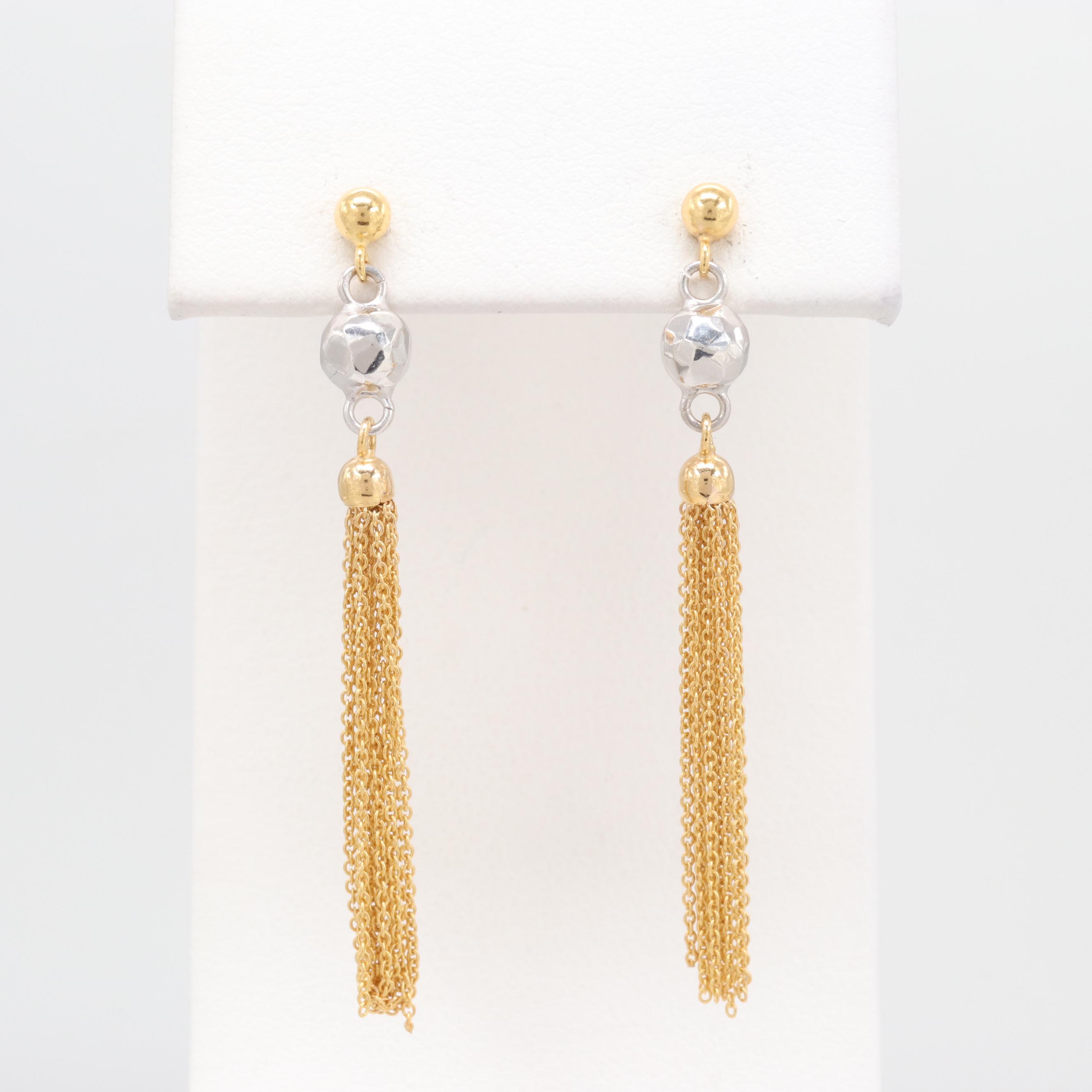 Italian 14k Yellow And White Gold Chain Tassel Earrings