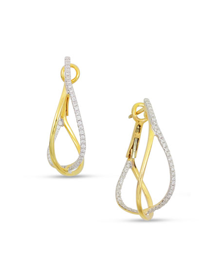 Marco Bicego Goa Collection 18k Yellow Gold Pave Diamond Crossover Hoop Earrings In Yellow Gold