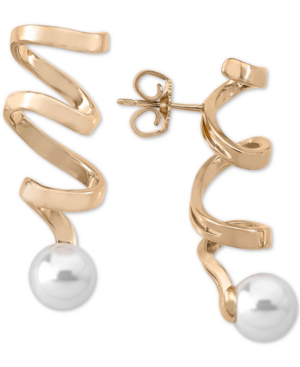 Simulated Pearl Spiral Drop Earrings In Gold Plated Sterling Silver Or Sterling Silver