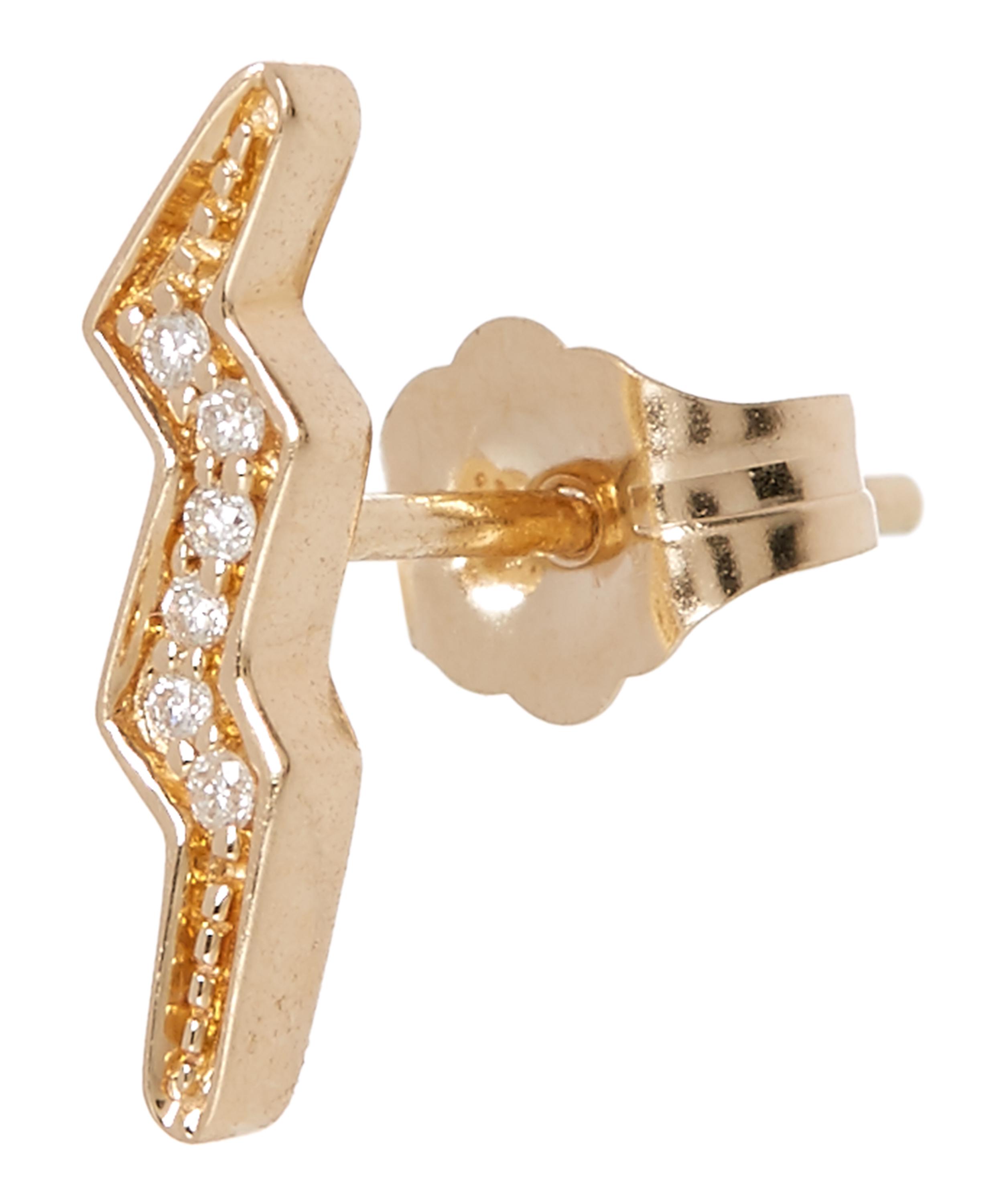 Gold White Diamond Mini Lightning Bolt Stud Earring