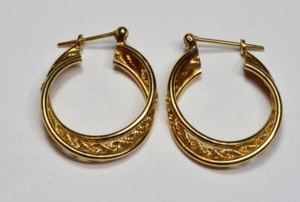 Details About Solid 14k Yellow Gold Pierced Hoop Earrings Framed Twisted Rope Design 3 4 Gram