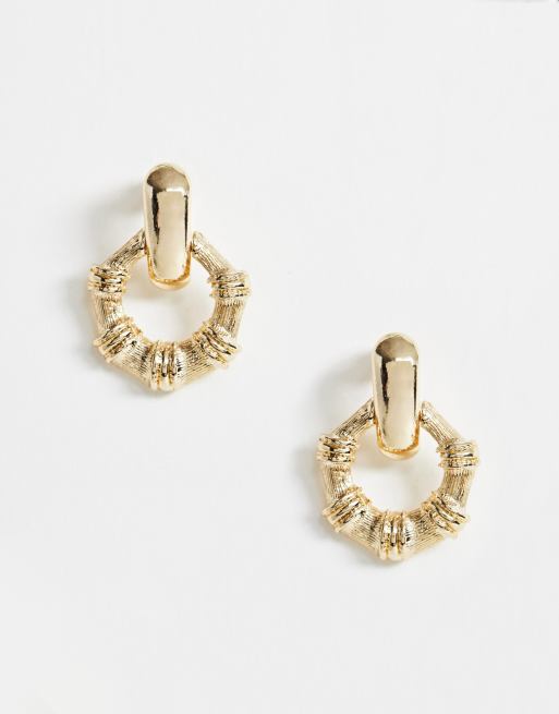 Asos Design Earrings With Open Bamboo Circle In Gold Tone