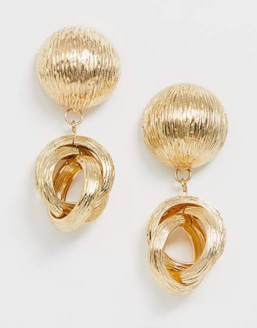 Asos Design Earrings With Textured Link Drop In Gold Tone