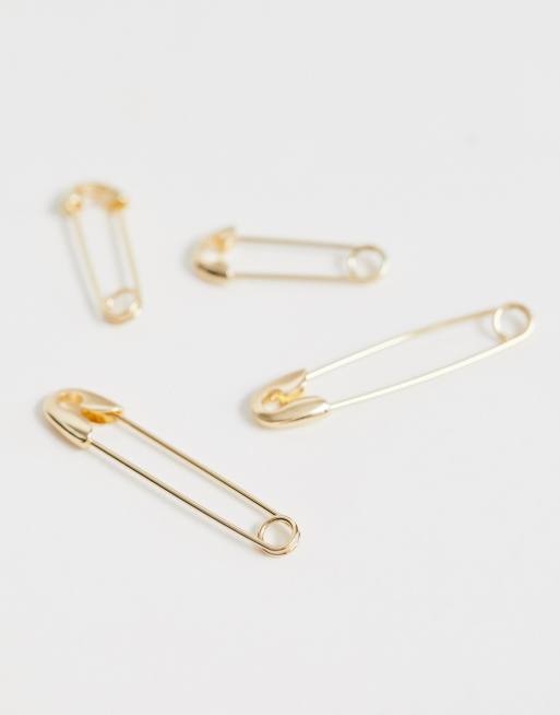 Asos Design Pack Of 2 Earrings In Safety Pin Design In Gold Tone