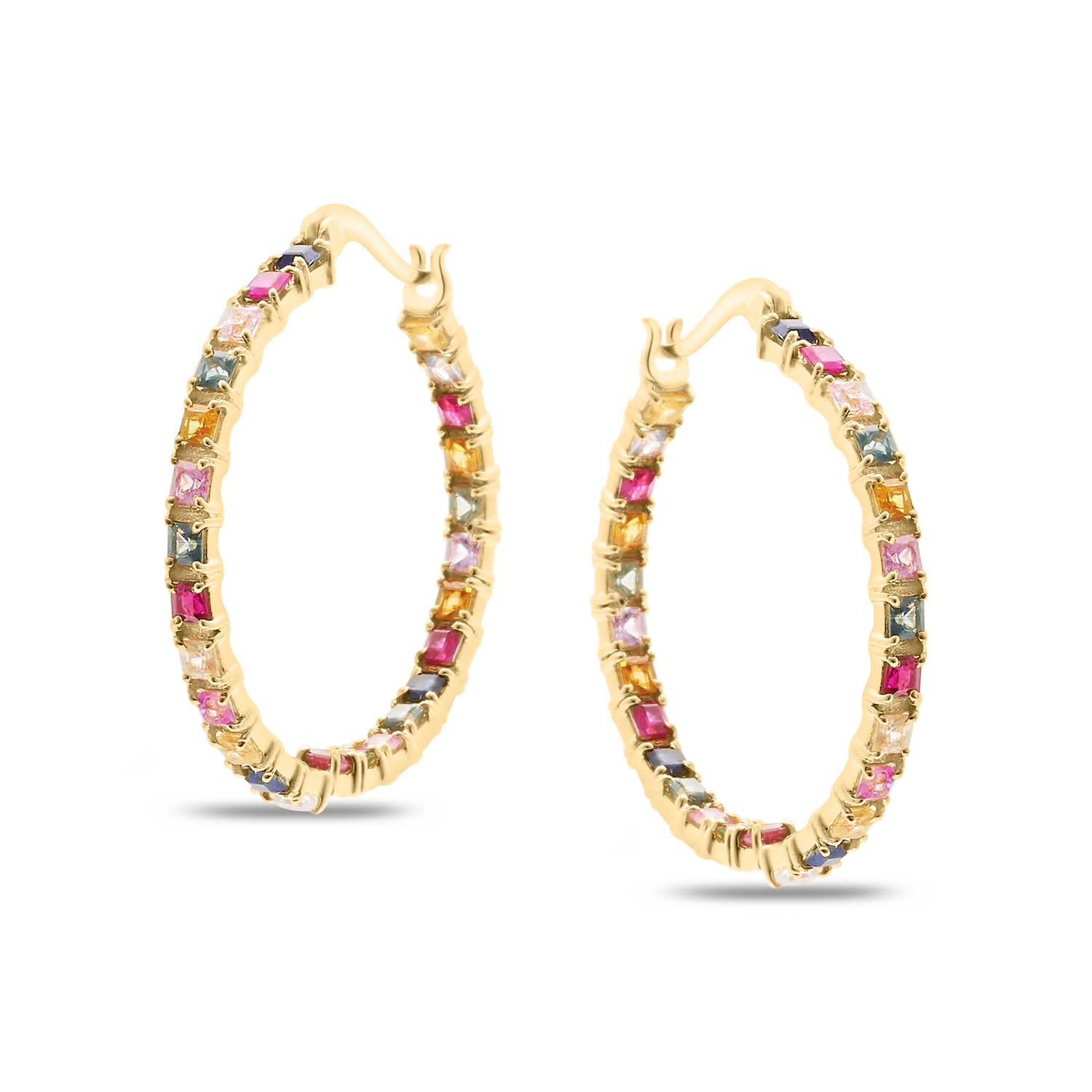 Multicolor Stones Square Hoop Earring In 18k Yellow Gold By Tresor Collection