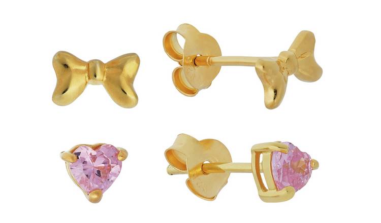 Buy Disney Minnie 9ct Gold Plated Ss Set Of 2 Stud Earrings Kids Earrings Argos