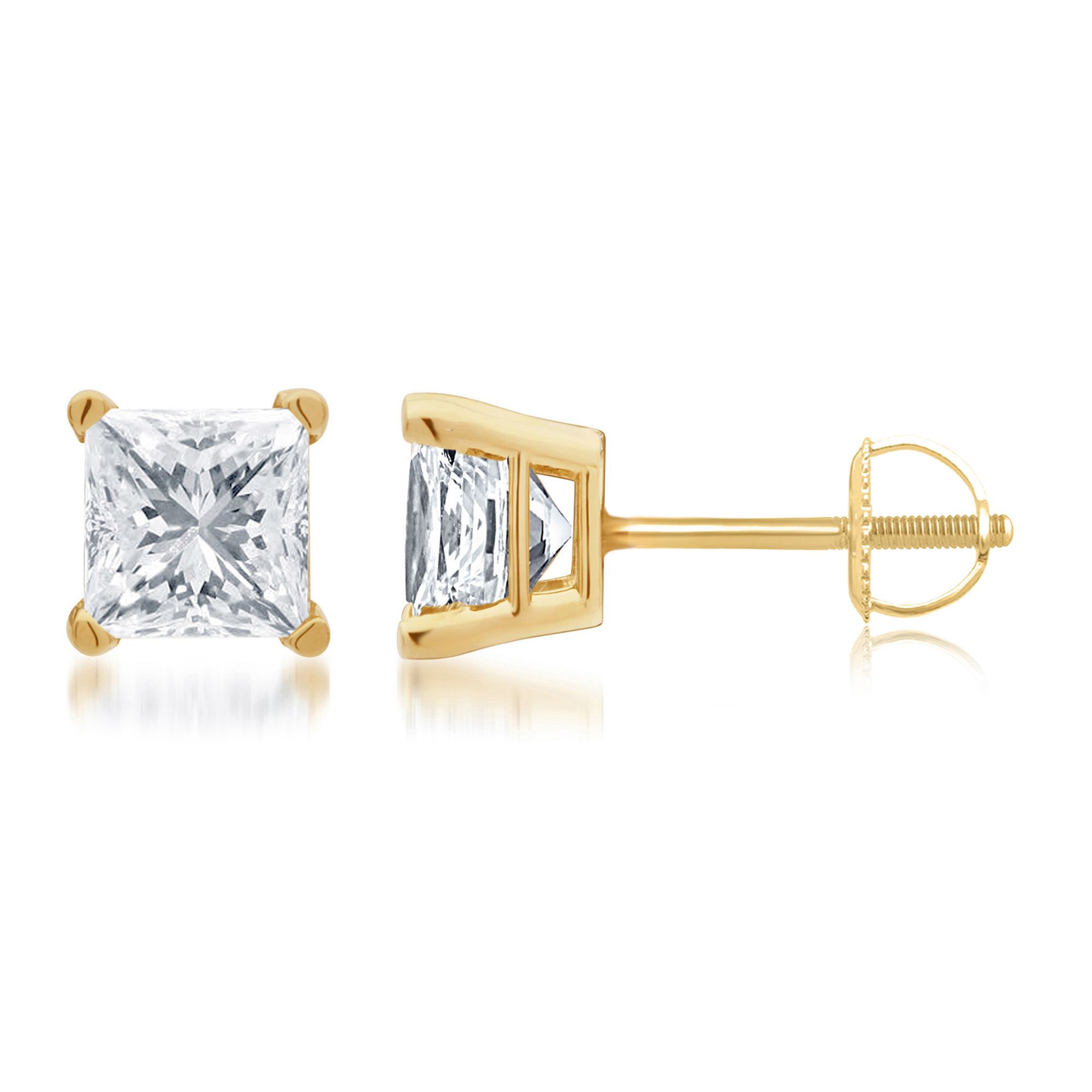 1 00 Ct T W Princess Cut Diamond Stud Earrings In 14k Yellow Gold