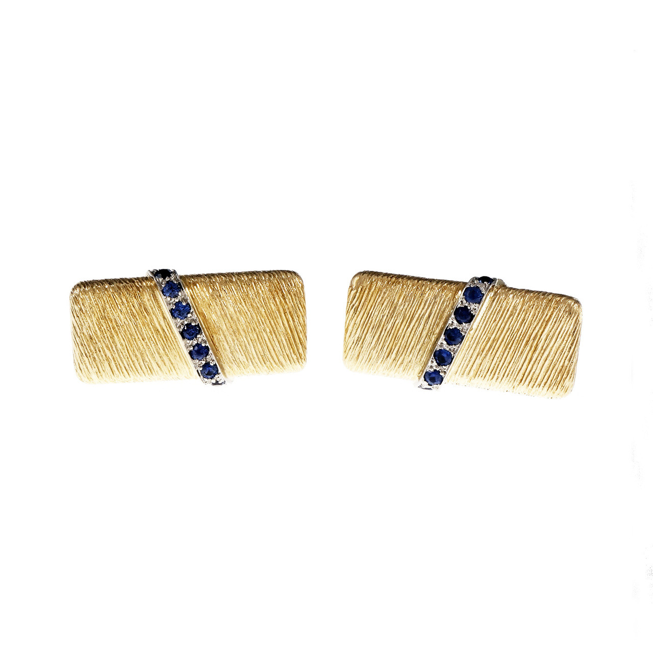 Vintage 1940 Textured Rectangular Sapphire Cufflinks 14k Yellow Gold