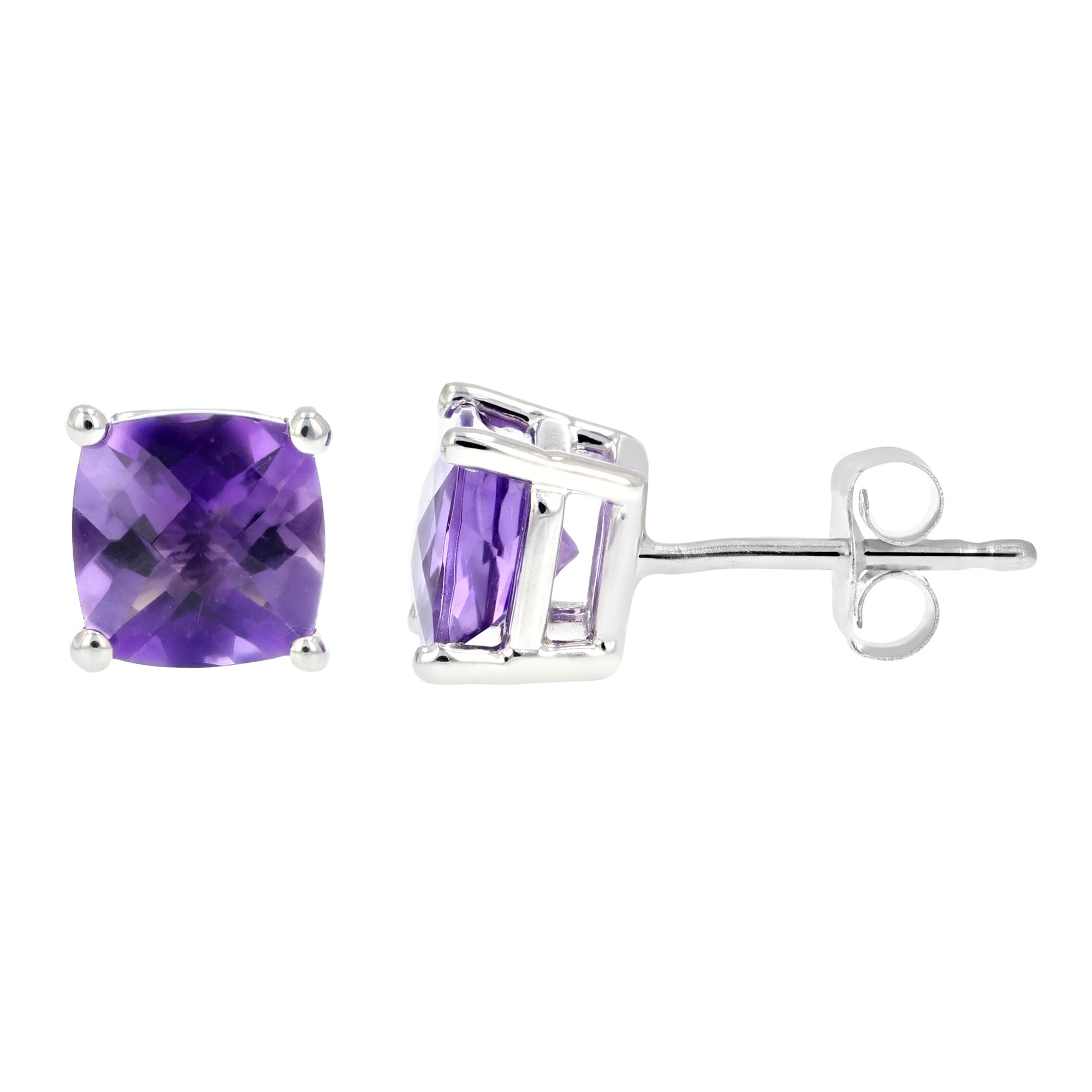 Amairah 1 80 Ct T W Cushion Cut Amethyst Stud Earrings In 14k White Gold