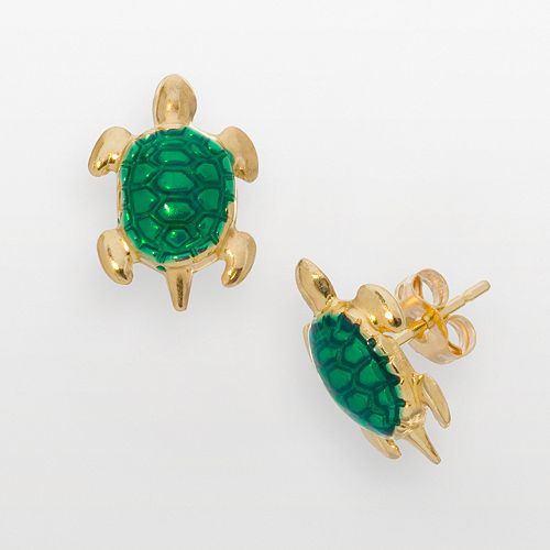 Details About 14k Yellow Gold Sea Turtle Post Stud Earrings Ball Button Animal Life Reptile