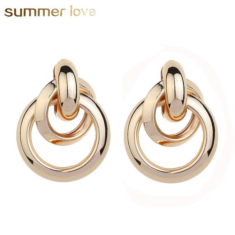 Trendy Gold Color Big Round Circle Dangle Earrings