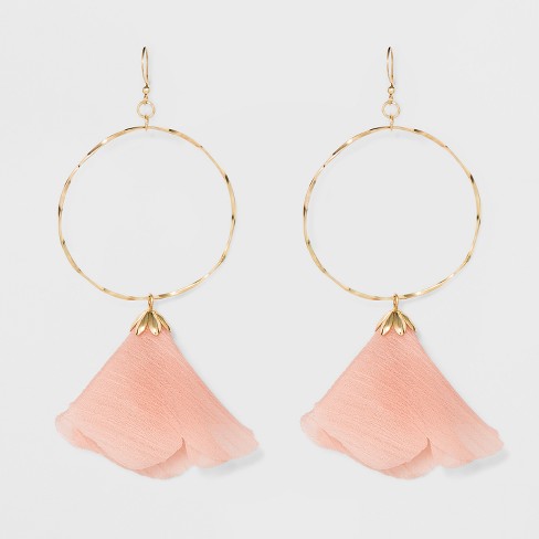 Thin Wire Circle And Fabric Earrings A New Day Light Pink Gold