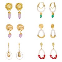 18k 750 Yellow Gold Earrings With Keshi Biwa Pearls And Coral Length 63 Mm Catawiki