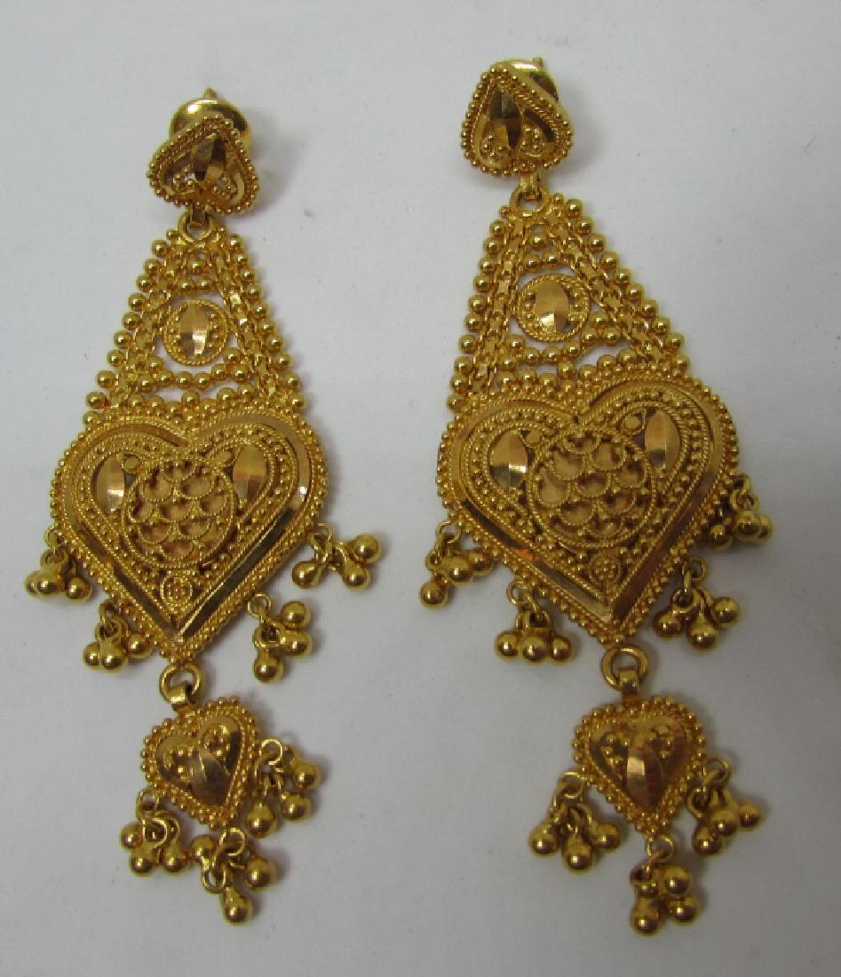 22k Dm Gold Hanging Heart Earrings 23 Grams