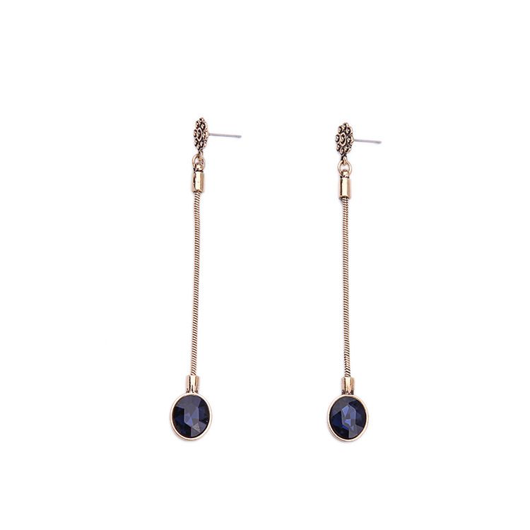 Simply Artificial Stone Scott Earrings Long Tassel Earring Dark Blue Crystal Dangles Gold Plated Earring Drop Fashion Jewelry