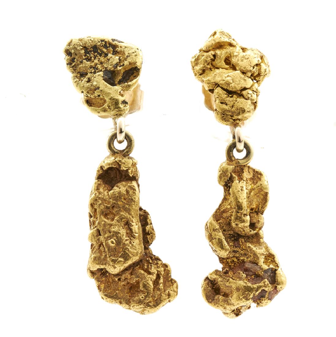 Mens 10k Yellow Gold Nugget Earrings With Cz