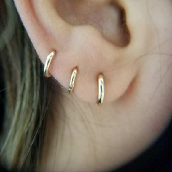 14k Solid Yellow Or Rose Gold Tiny Hoop Earrings Boutique