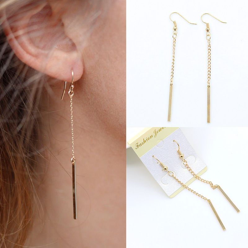 18k Gold Plated Top Quality Simple Long Chain Cheap Earrings Fashion Women Cheap Long Chain Earring Lines Brincos Fashion Unique Design