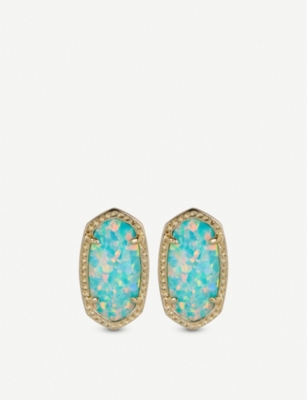 Kendra Scott Ellie 14ct Gold Plated Aqua Kyocera Opal Stud