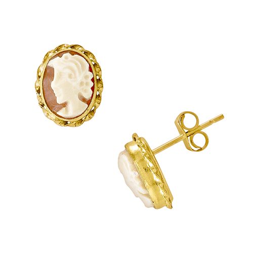 14k Yellow Gold And Carved Shell Cameo Stud Earrings