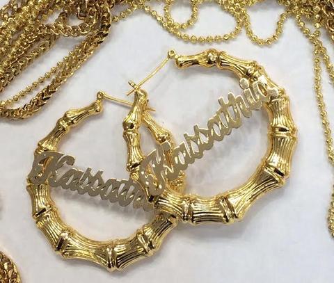 Shop womens gold hoop earrings thin gold hoop earrings and more at macys. Tinaco bamboo gold earring personalized custom name earrings light weight earring hoops for women bestfriends jewelry gift personalized jewelry gift for her. From studs to hoops and drop earrings our selection of personalized earrings is a fashionable way to wear your identity.