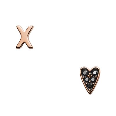 X And Heart Rose Gold Tone Stainless Steel Studs Fossil