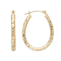 1 Ct T W Diamond 10k Yellow Gold Hoop Earrings