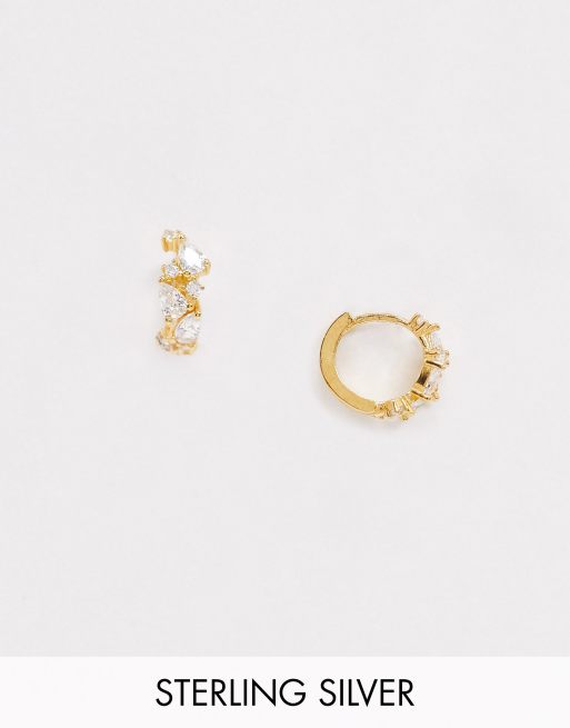 Astrid Miyu Sterling Silver 18k Gold Plated Cubic Zirconia Crystal Asymmetric Huggie Hoop Earrings
