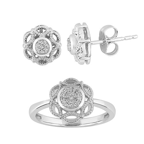 10k White Gold 1 10 Carat T W Diamond Stud Earrings Ring Set